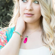 Hot Pink Chalcedony and Turquoise Stone Necklace