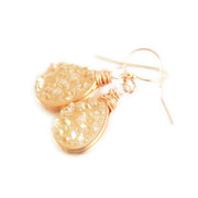 Zoom Champagne Druzy Rose Gold Teardrop Earrings